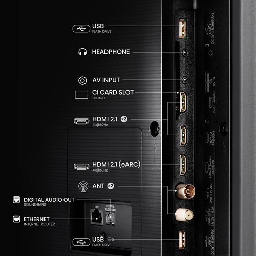 Connectivity: 4x HDMI, 2x USB, Bluetooth, Wi-Fi